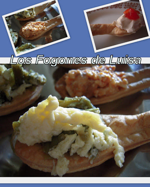 Aquí veis unas que prepare para el café que a mis amigas les gustaron mucho, debía de estar un poco espesa porque no se me ocurrían rellenos, con todos los que hay, los que prepare son con atún,huevo y tomate, otras con revuelto con ajetes y las de queso, ya sabéis se le puede poner lo que sea, eso si rellenarlas unos minutos antes, supongo que si no se ablandarían